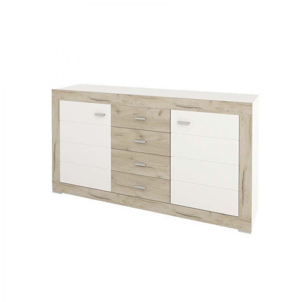 Комод Пуэро 1600 2Д 4Ш - модульная гостиная от мебельной фабрики Сокме, выполненная в стиле модерн. Оригинальная цветовая гамма МДФ фасадов в цвете "белый глянец" и "дуб крафт серый", - внесет в интерьер гостиной гармонию и уют. Изысканный дизайн несомненно понравится самым взыскательным покупателям.