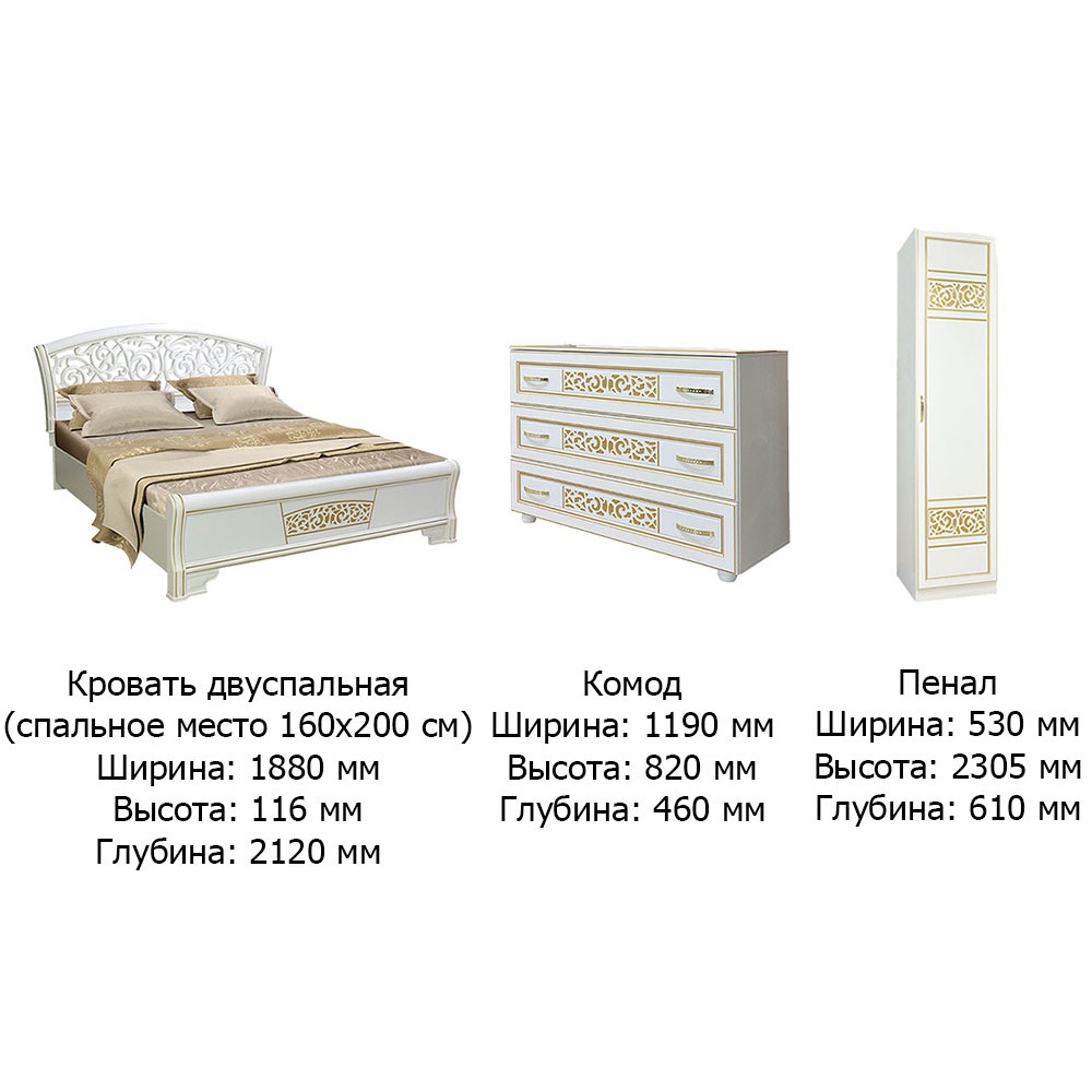- Кровать (спальное место 160х200 см) (габаритные размеры 188х116х212 см) - 1 шт